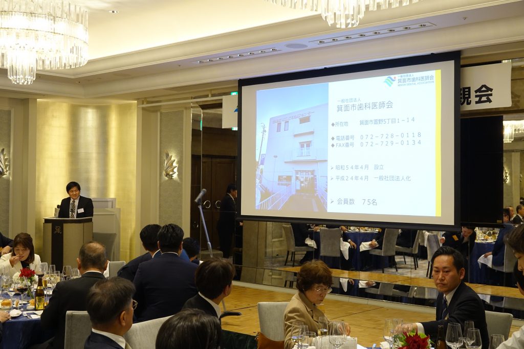 令和8年1月10日、セントレジスホテル大阪にて「一般社団法人箕面市歯科医師会 新年懇親会」を開催しました。当日は加茂野会長の挨拶に続き、箕面市長、能勢町長をはじめ、多くの来賓の皆さまより温かい祝辞を頂戴し、過去最多となる来賓のご出席のもと、盛大な会となりました。